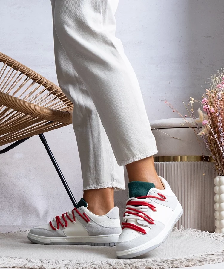 Szare sneakersy trampki z czerwonymi sznurówkami Arcobaleno