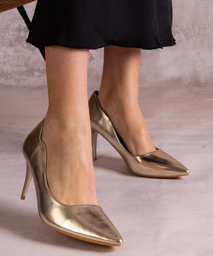 Złote mokasyny damskie ze złotym zdobieniem Selanos