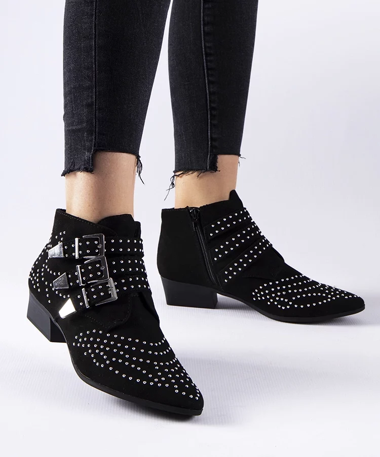 Czarne ozdobne botki na niskim słupku Forever