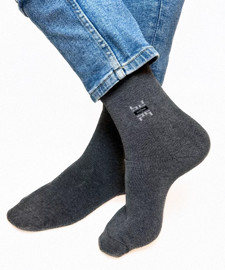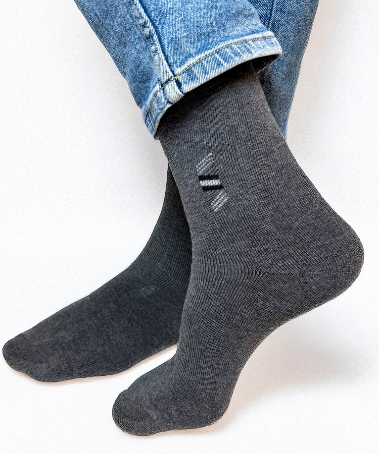 • Szare ciepłe skarpetki z granatowym akcentem Siera