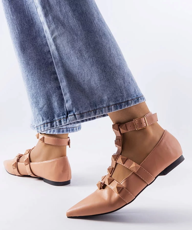 Beżowe balerinki z ekoskóry zdobione klamrami Emmarino