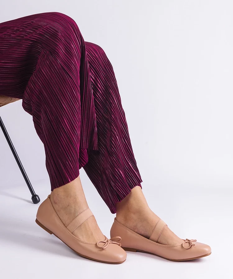 Beżowe balerinki z kokardką Acro