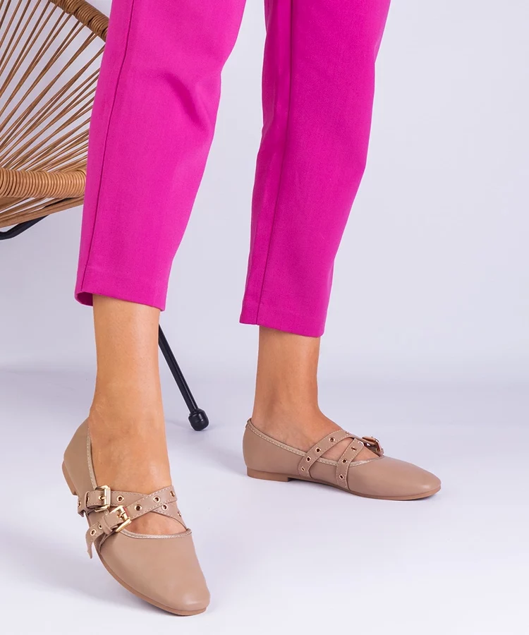 • Beżowe balerinki z ekoskóry ze sprzączkami Vitoldora