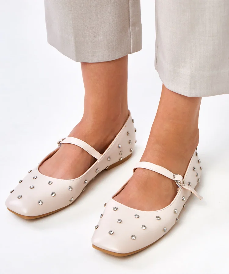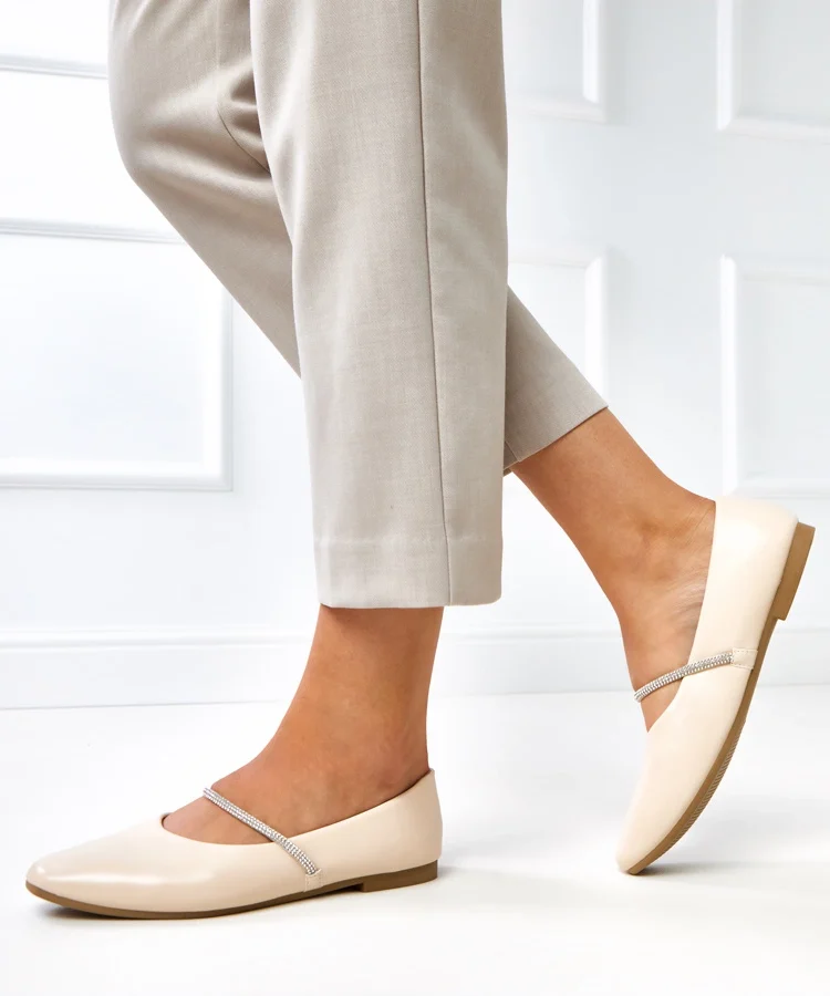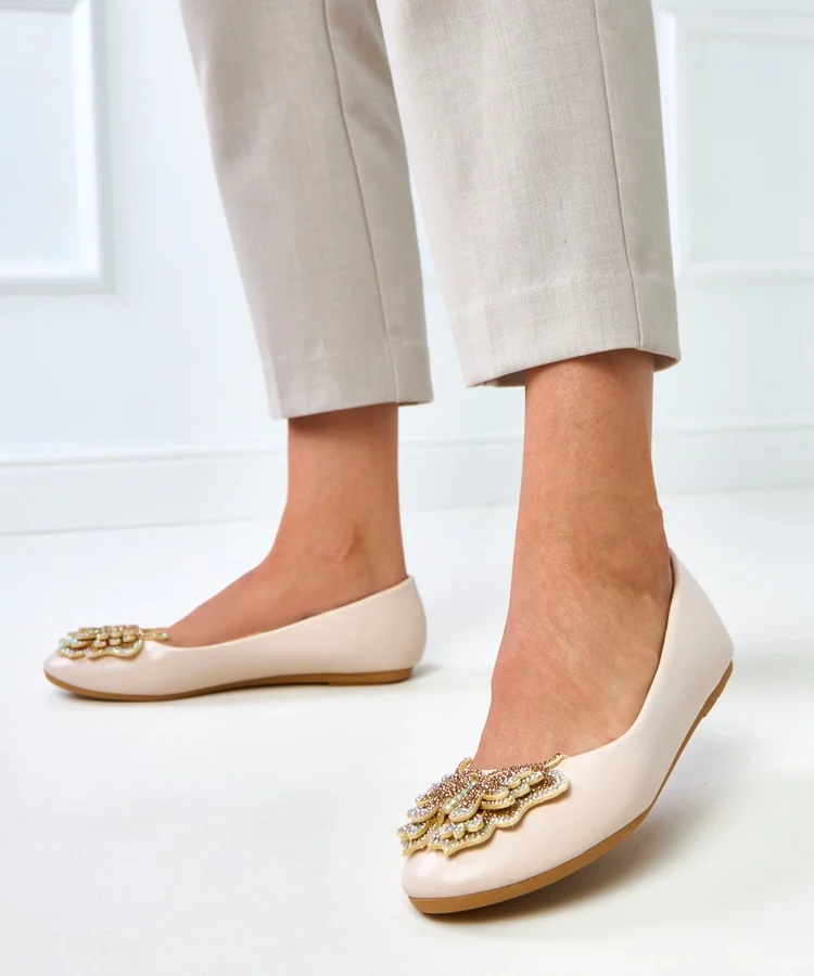 Beżowe balerinki zdobione cyrkoniami Fleming