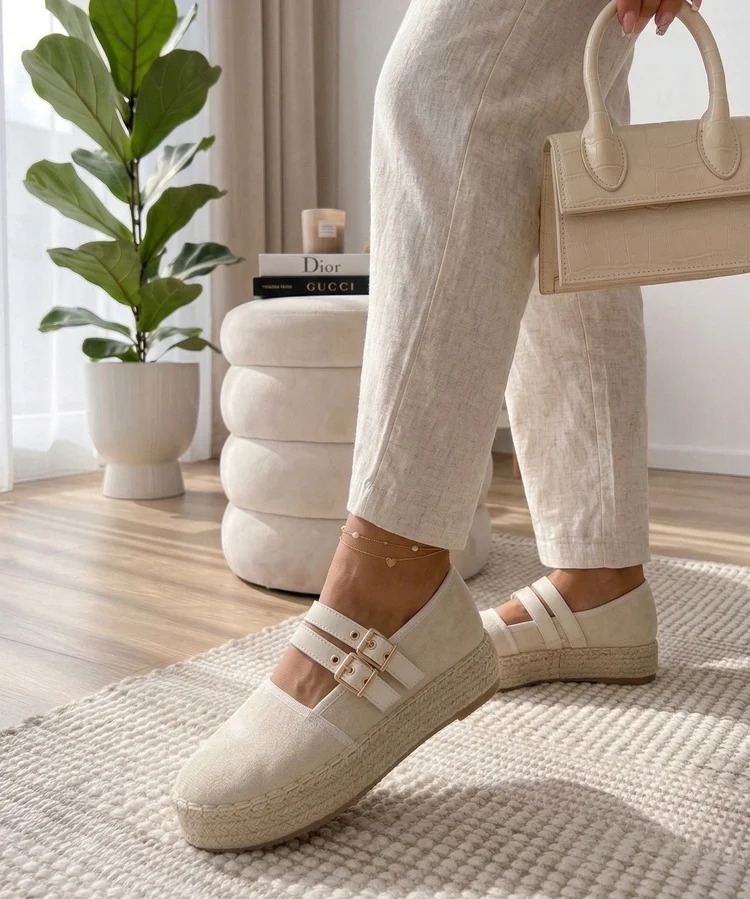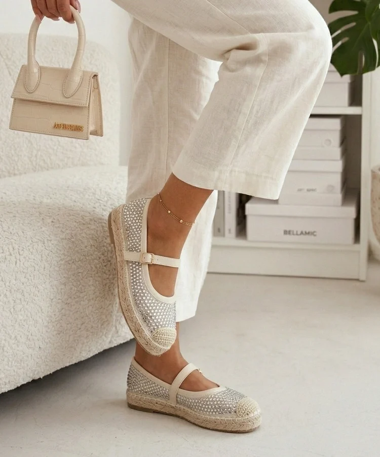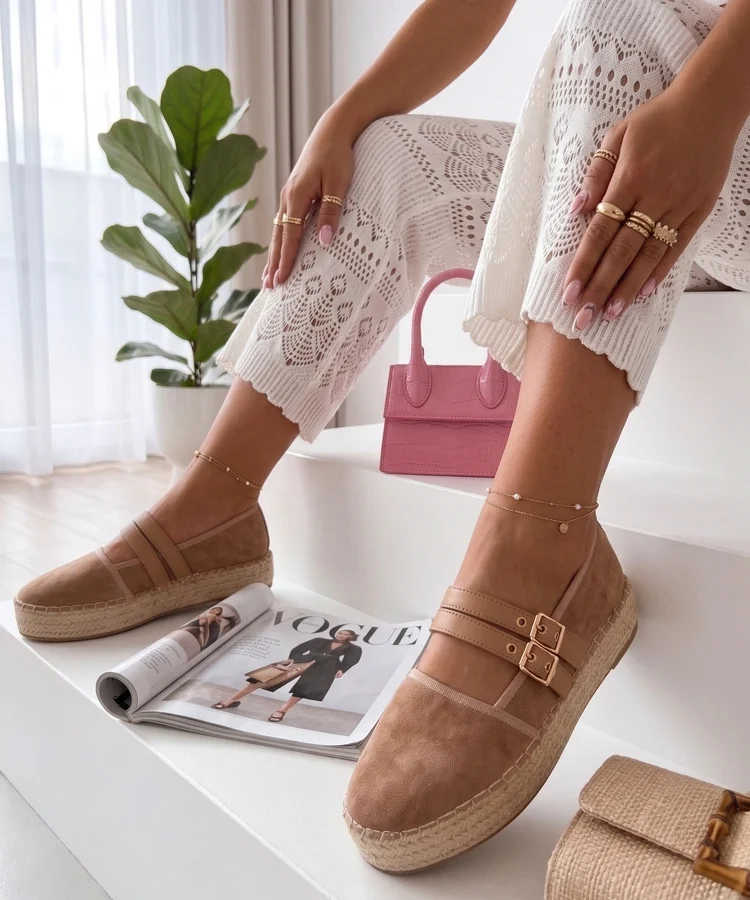 Beżowe espadryle z brokatową wstawką Myasia