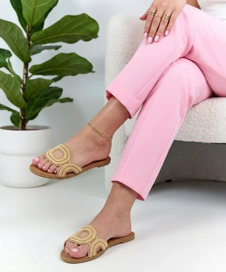Beżowe klapki z zabudowanym noskiem Columbus