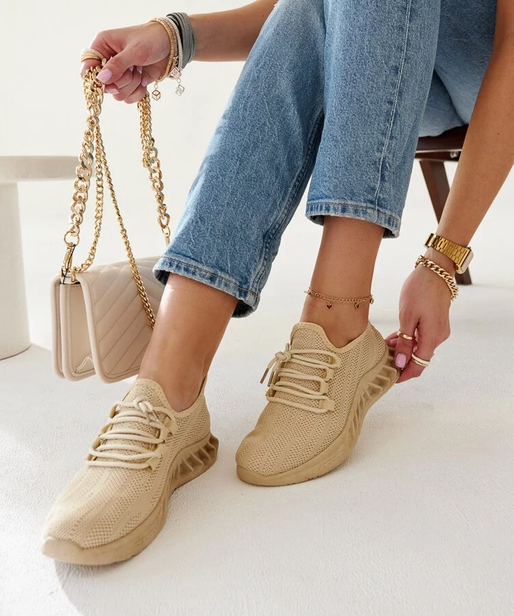 • Beżowe materiałowe sneakersy Milena