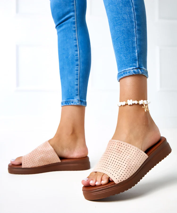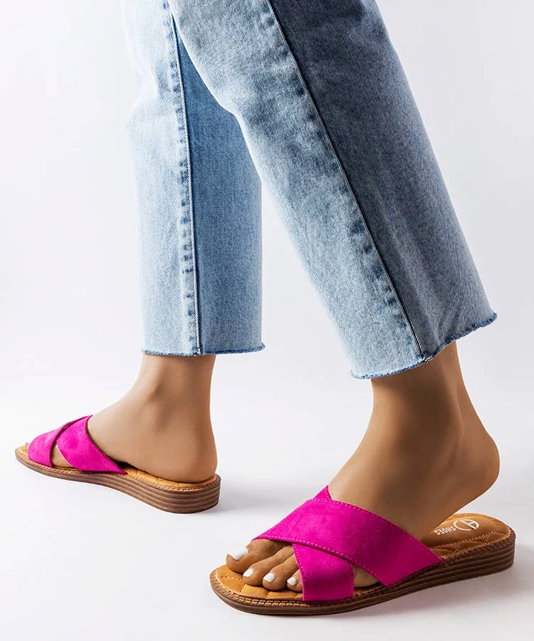 Różowe klapki z haftowanym paskiem Fargiza