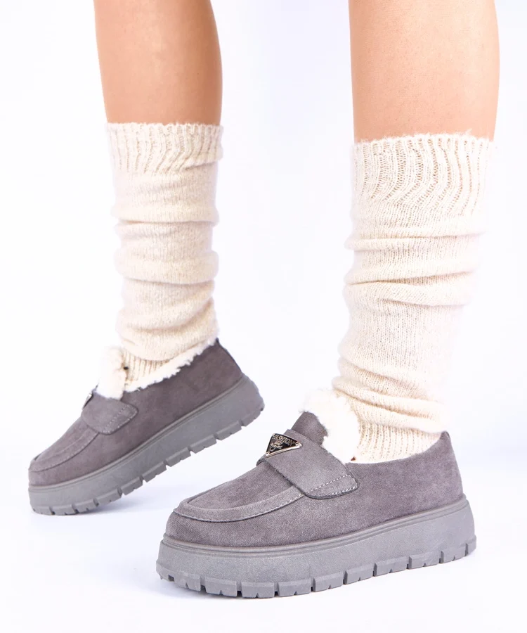 • Szare mokasyny na platformie ocieplane futerkiem Kirby