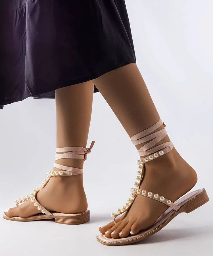 • Beżowe sandałki z perełkami Graystone