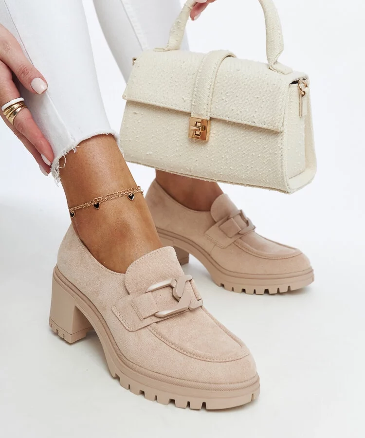 Beżowe półbuty na traktorowej podeszwie Jonell