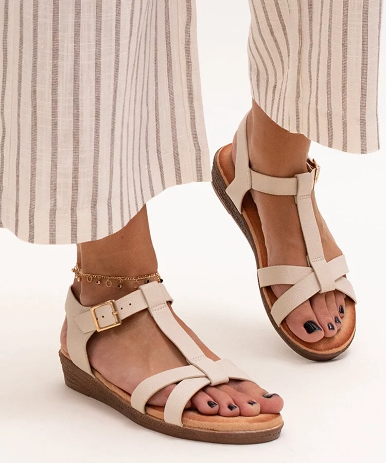 Beżowe sandałki na niskiej koturnie Sherine
