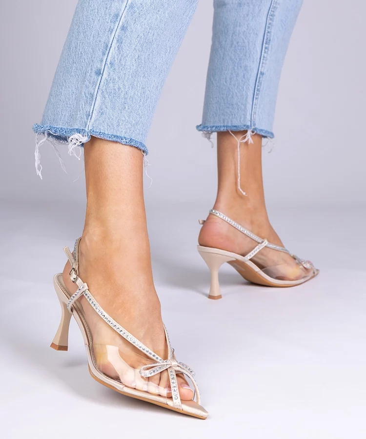 Beżowe przezroczyste sandały na szpilce z cyrkoniami Kloksi