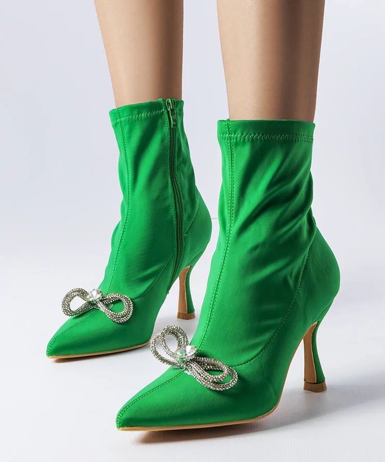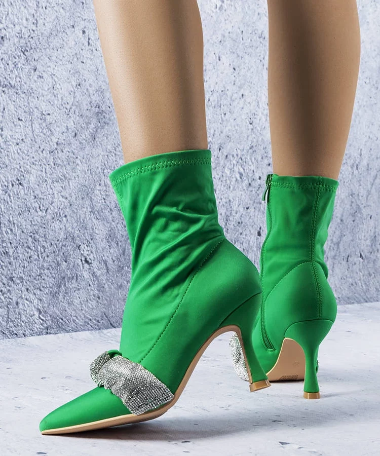 Zielone botki na szpilce zdobione cyrkoniami Fantagaro