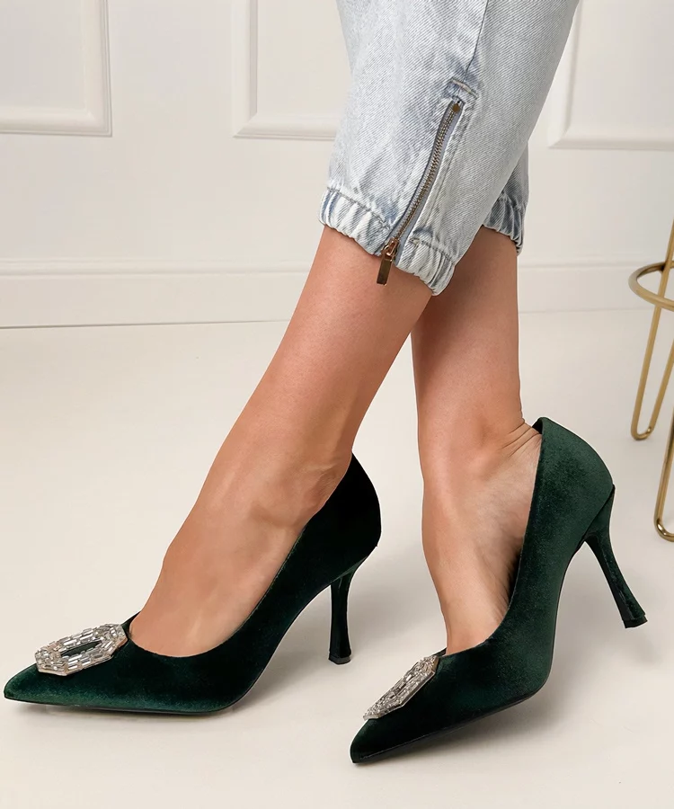 Zielone czółenka na szpilce z cyrkoniami Eleda