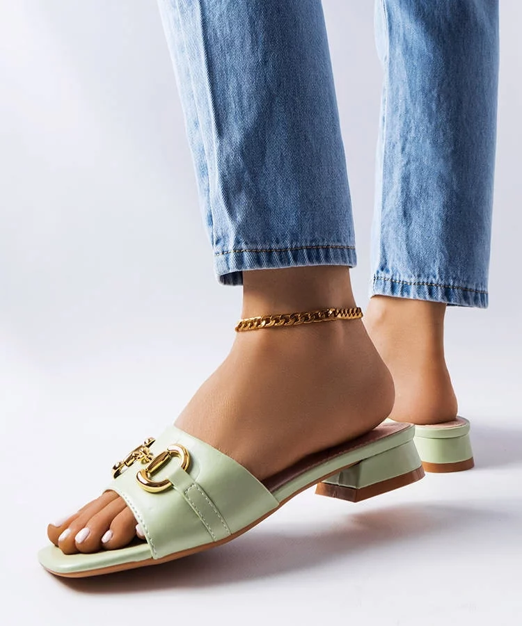 Zielone klapki zdobione pikowaniem Dorene
