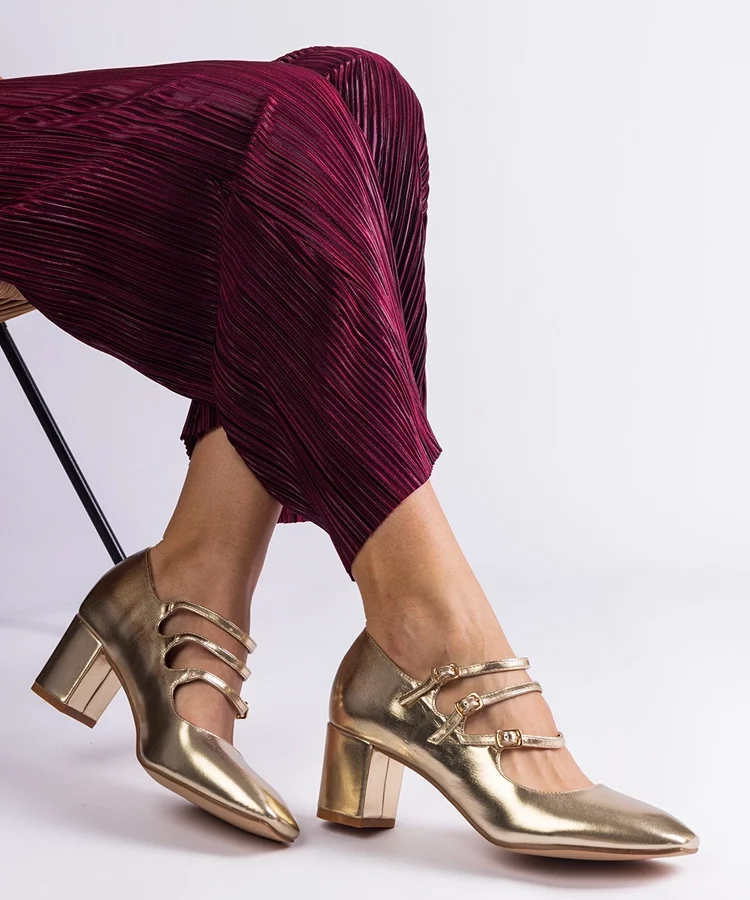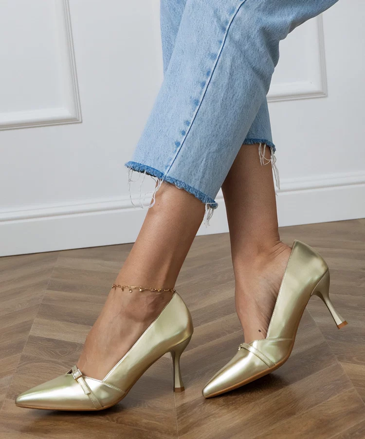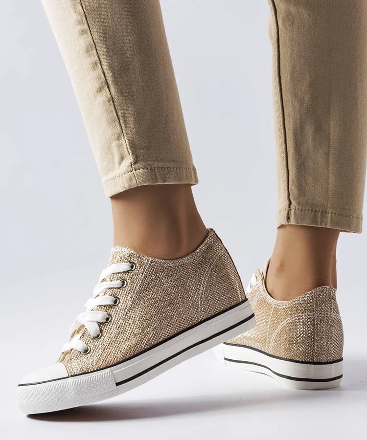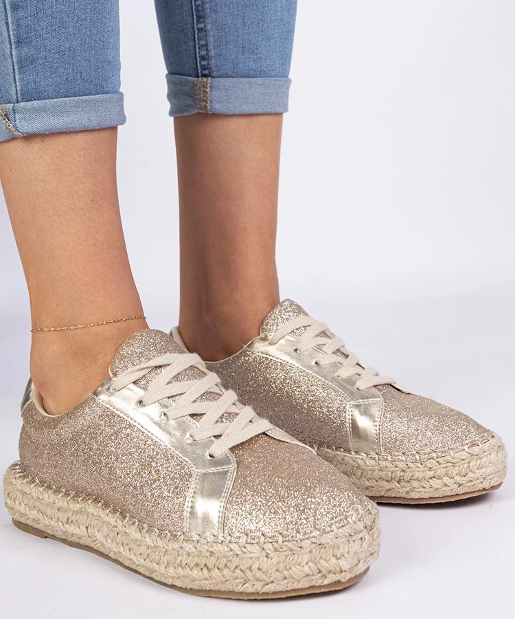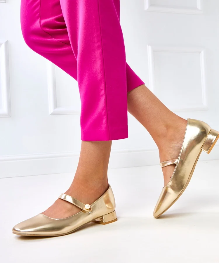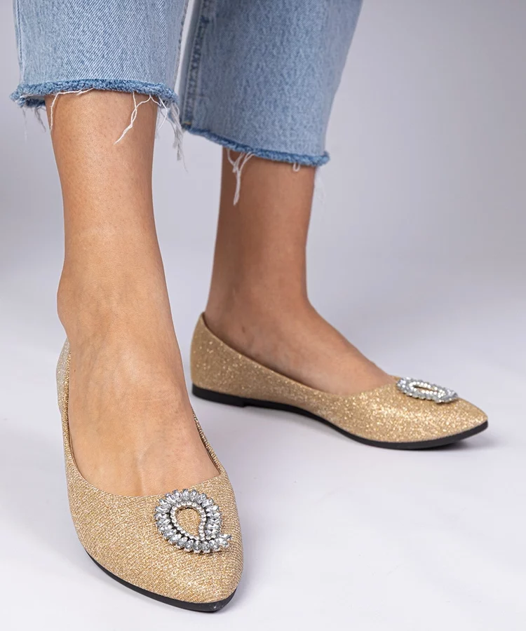 Złote damskie balerinki brokatowe z cyrkoniami Ellada