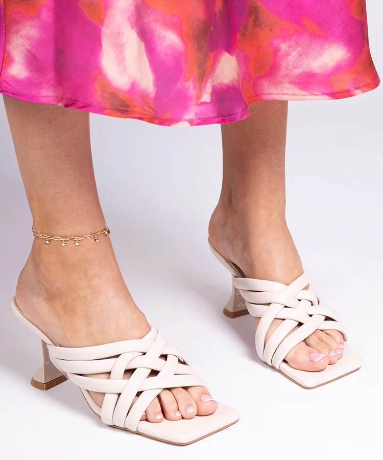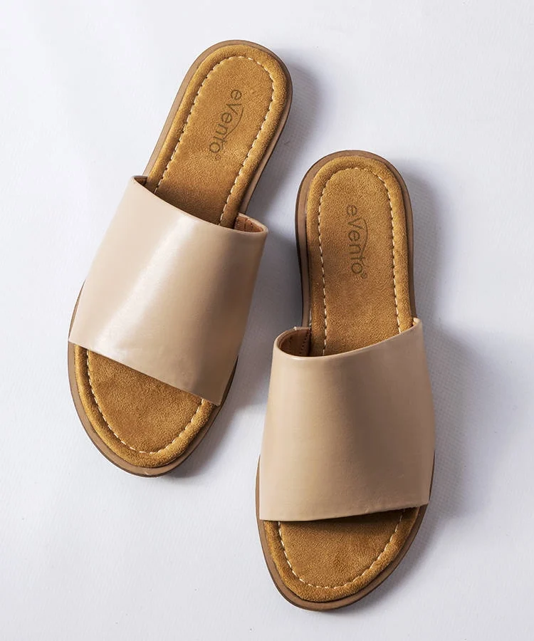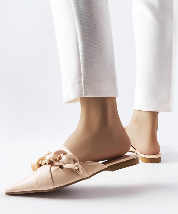 Beżowe eleganckie klapki z łańcuchem Patenaude