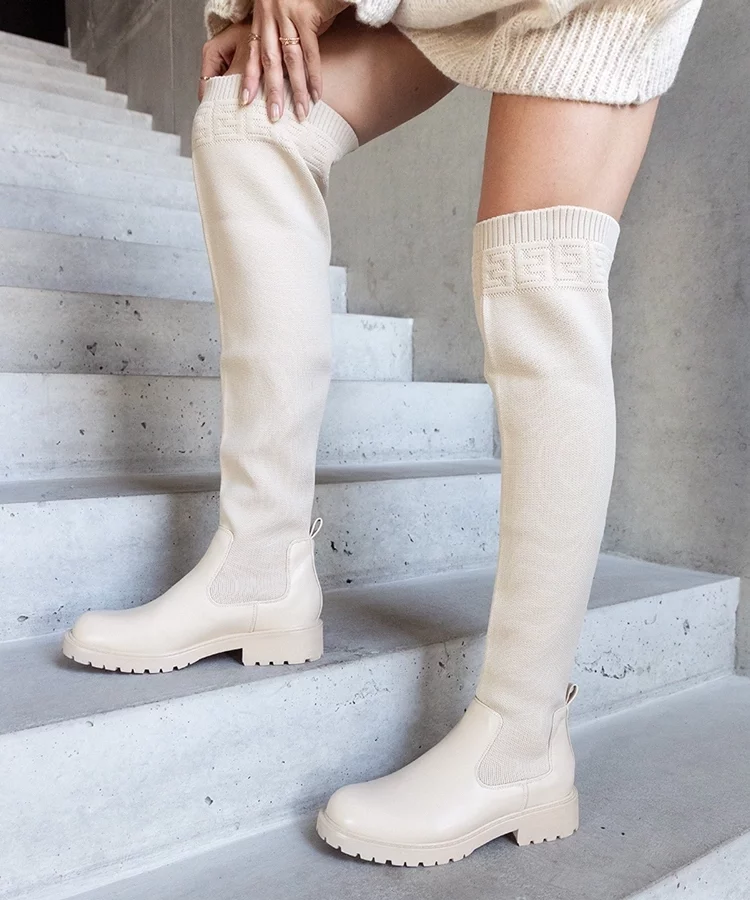 • Beżowe długie kozaki z elastyczną cholewką Juanra