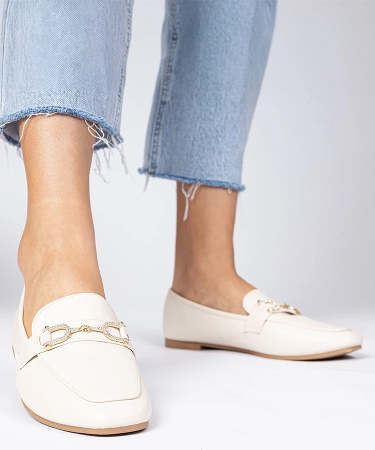 • Beżowe eleganckie mokasyny z cyrkoniami Banzao