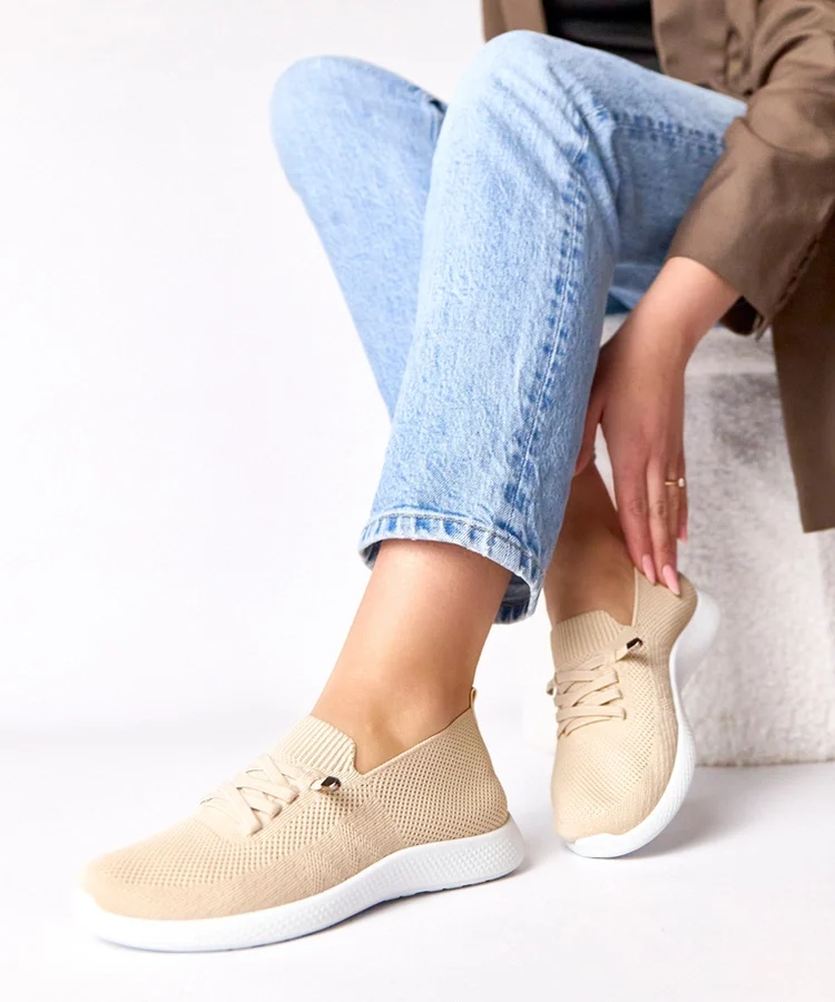 Beżowe damskie sneakersy ze złotym dodatkiem Kella