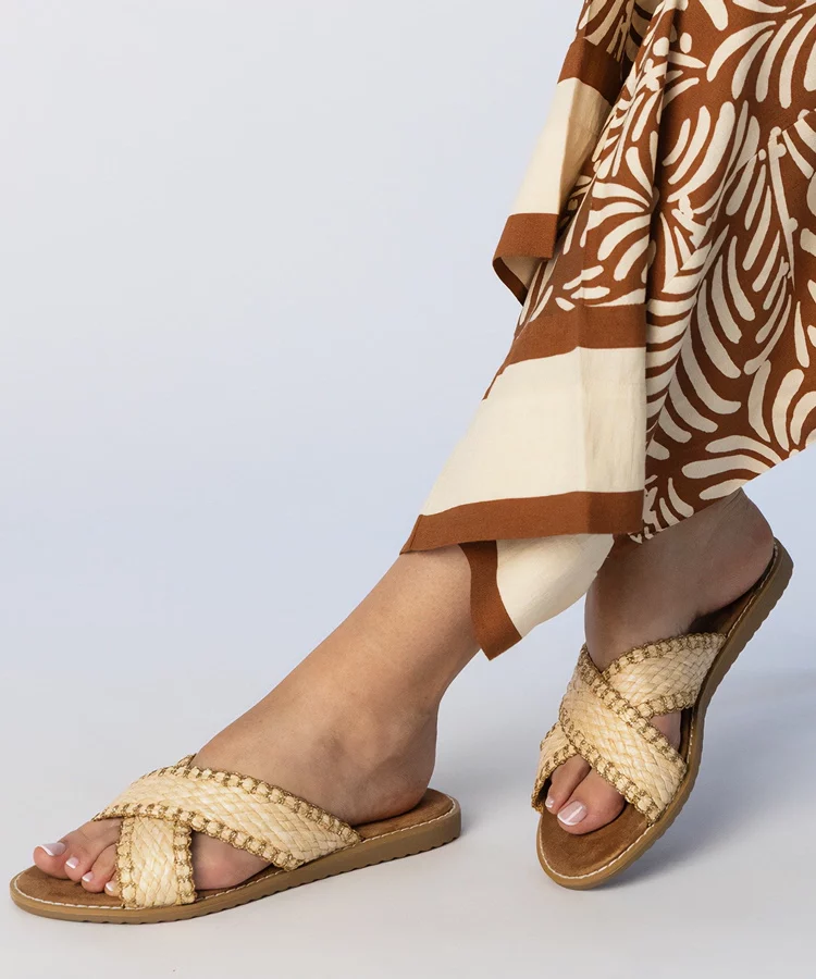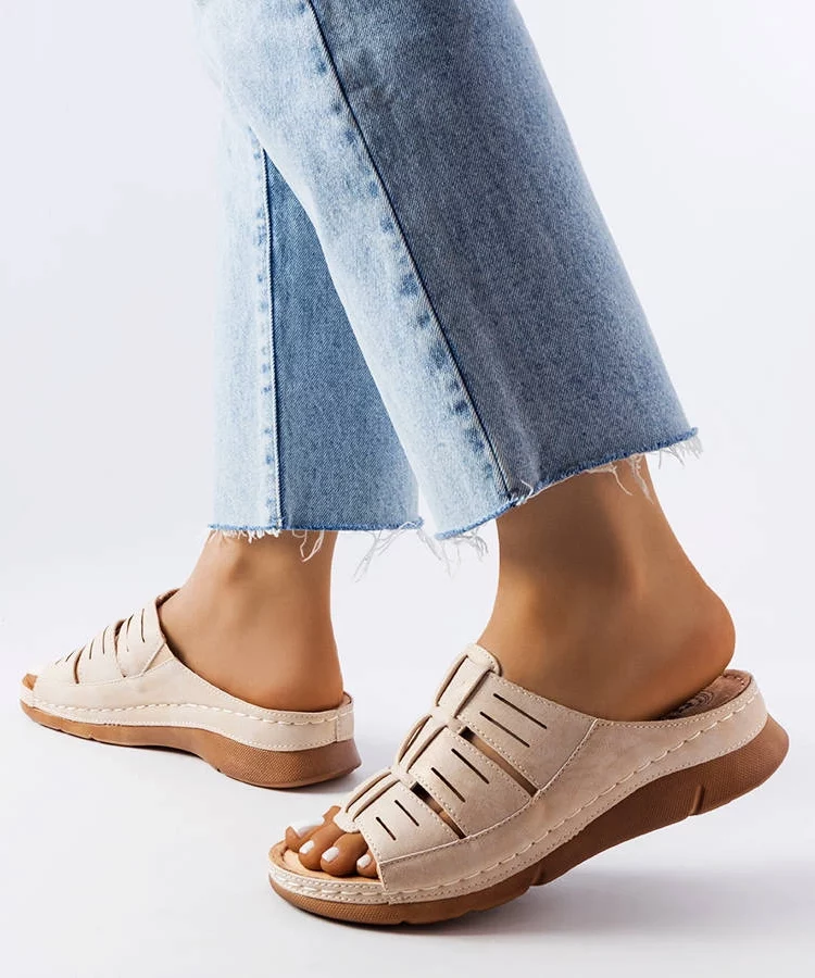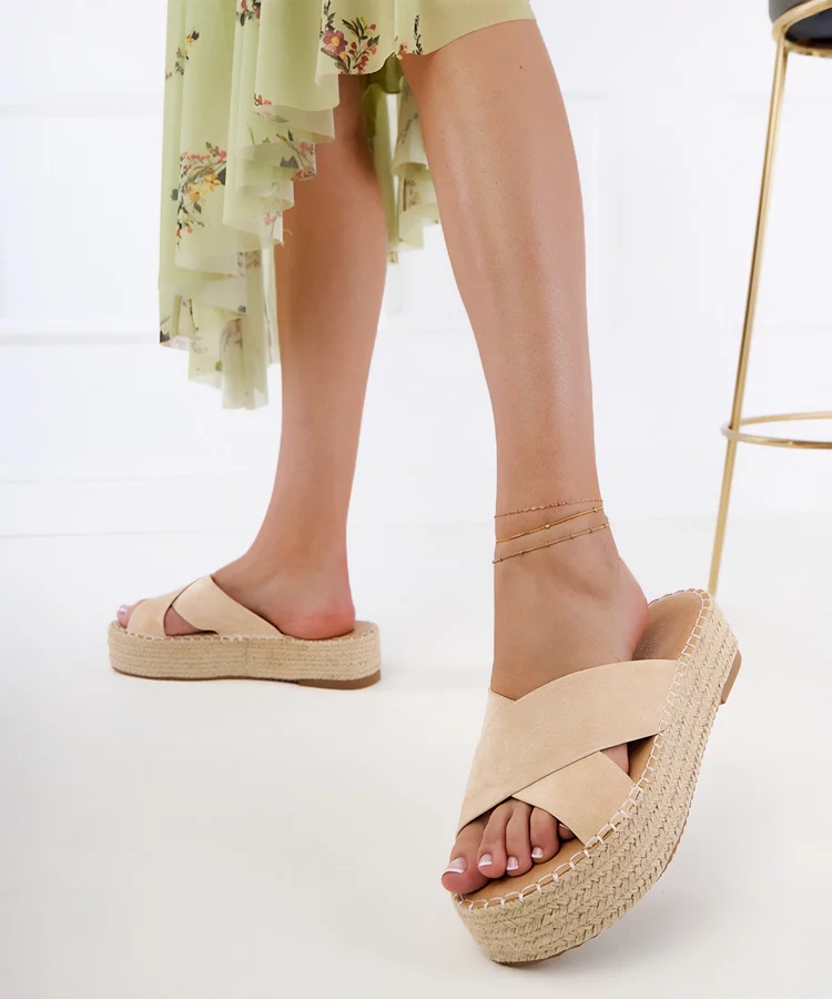 Beżowe klapki damskie plecione Ellinara