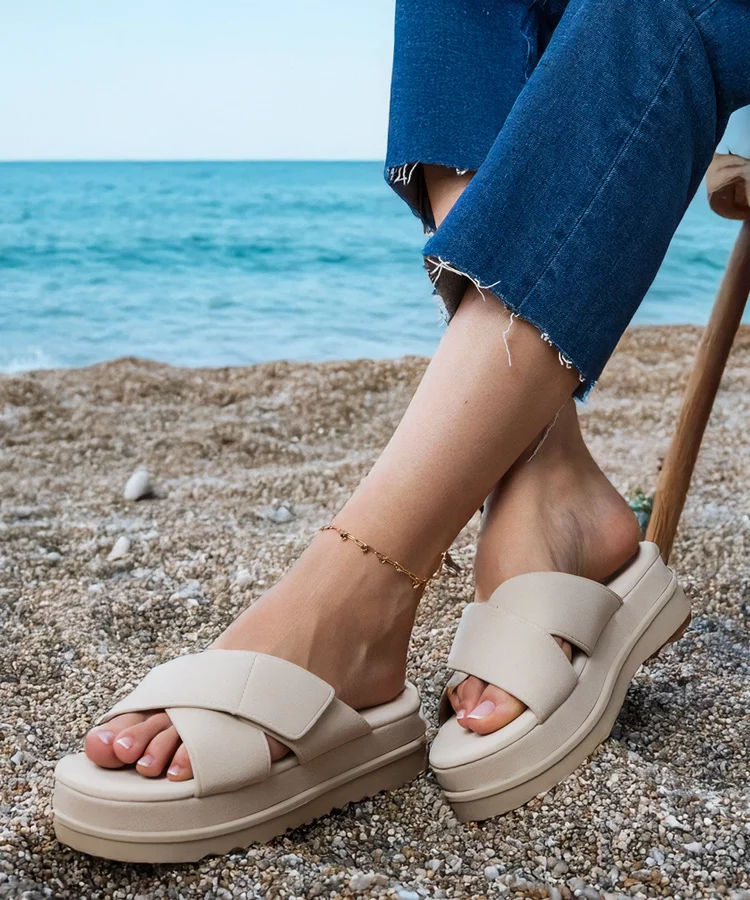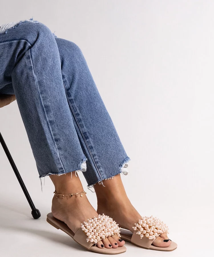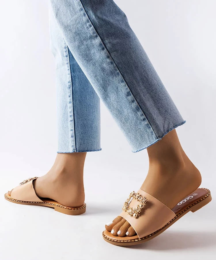 Beżowe klapki z zabudowanym noskiem Columbus
