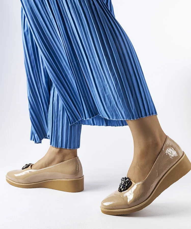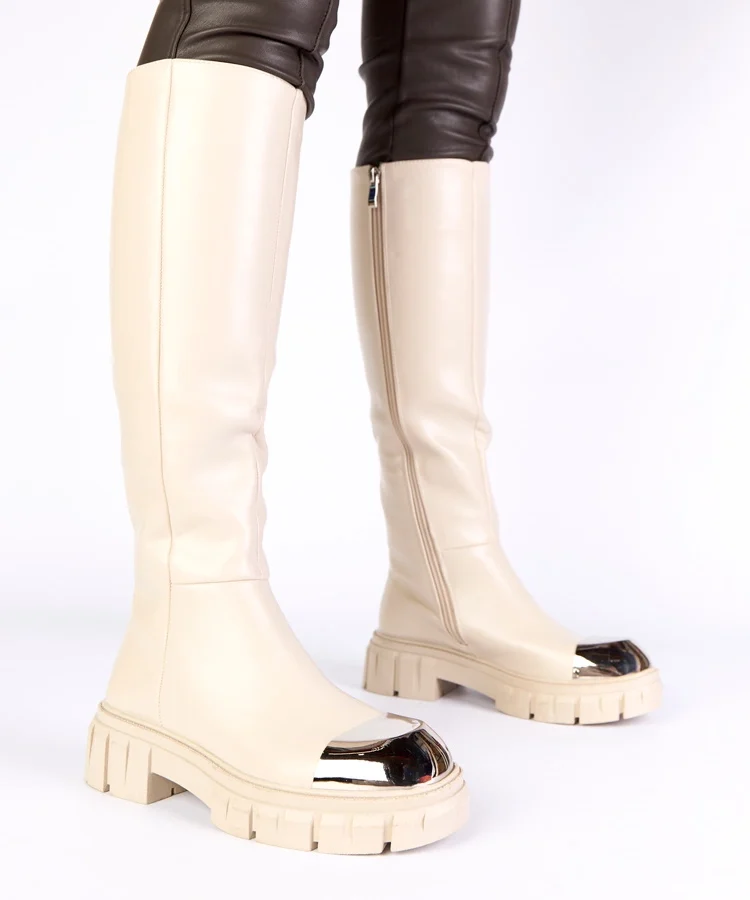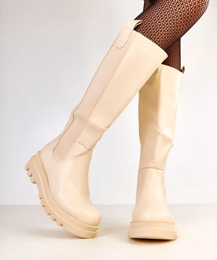 Beżowe kozaki z elastyczną cholewką na masywnej podeszwie Lokira