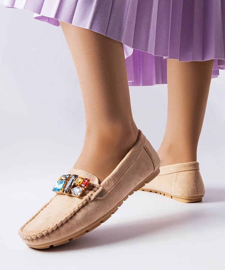• Beżowe mokasyny zdobione cyrkoniami Linsol