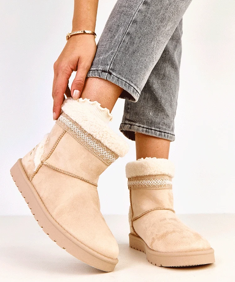 • Beżowe niskie śniegowce z ekozamszu Karolla