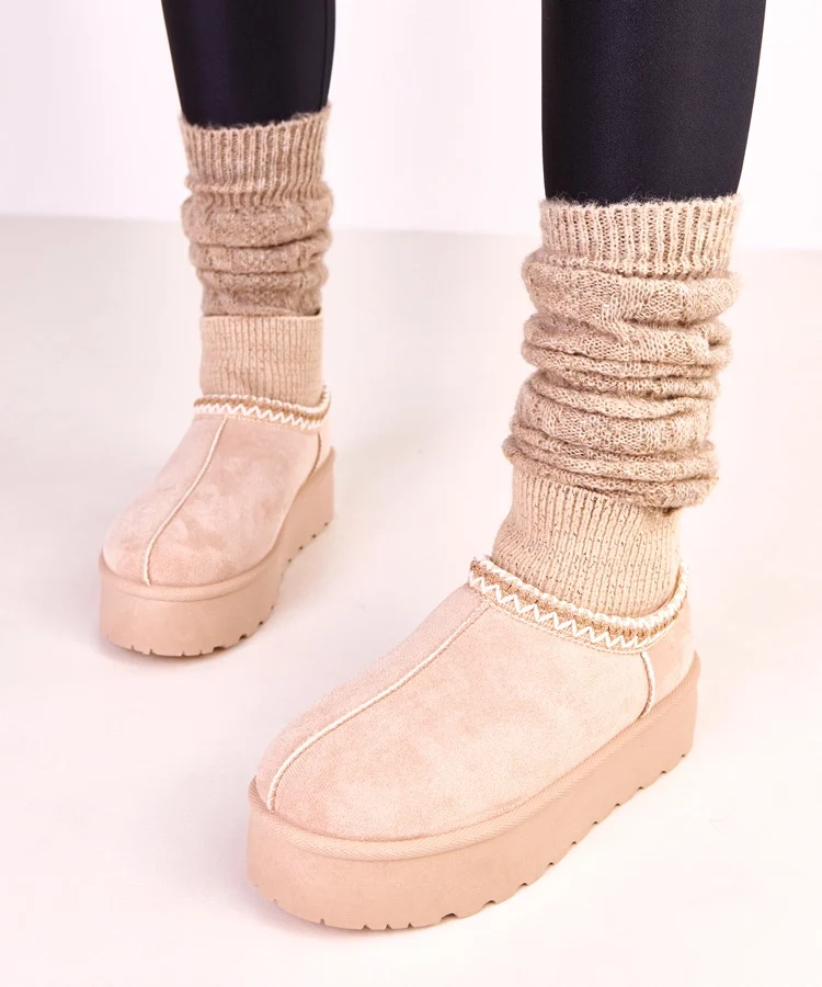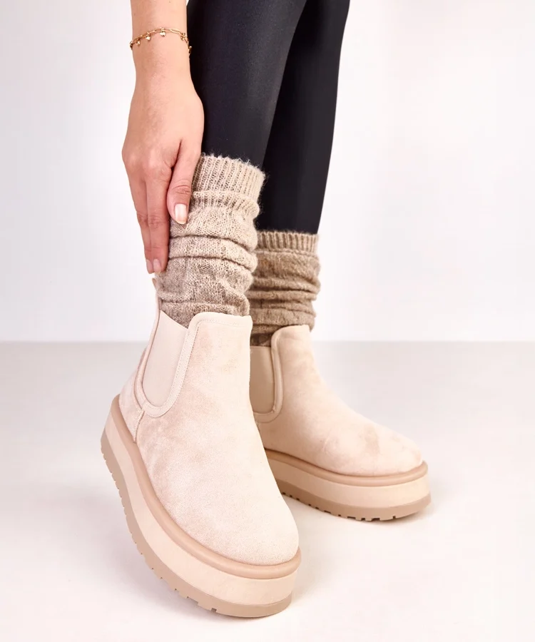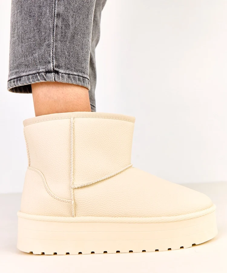 • Beżowe niskie śniegowce na platformie z ekoskóry Reinol