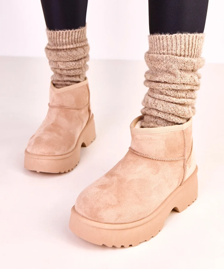 Beżowe niskie śniegowce na platformie z ekoskóry Reinol