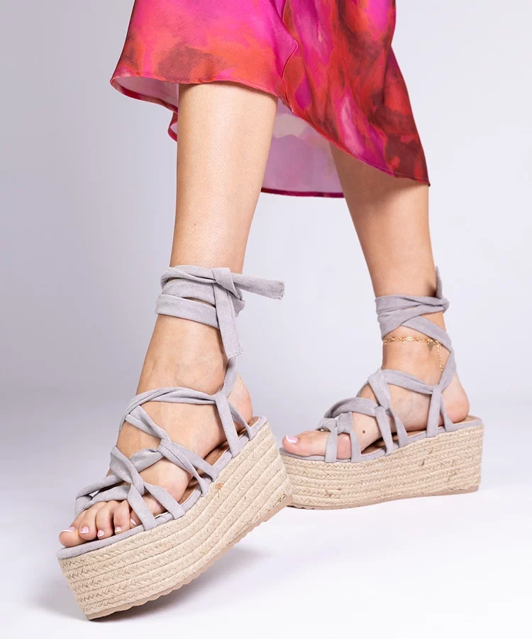 • Szare sandały espadryle na wysokiej platformie Narita