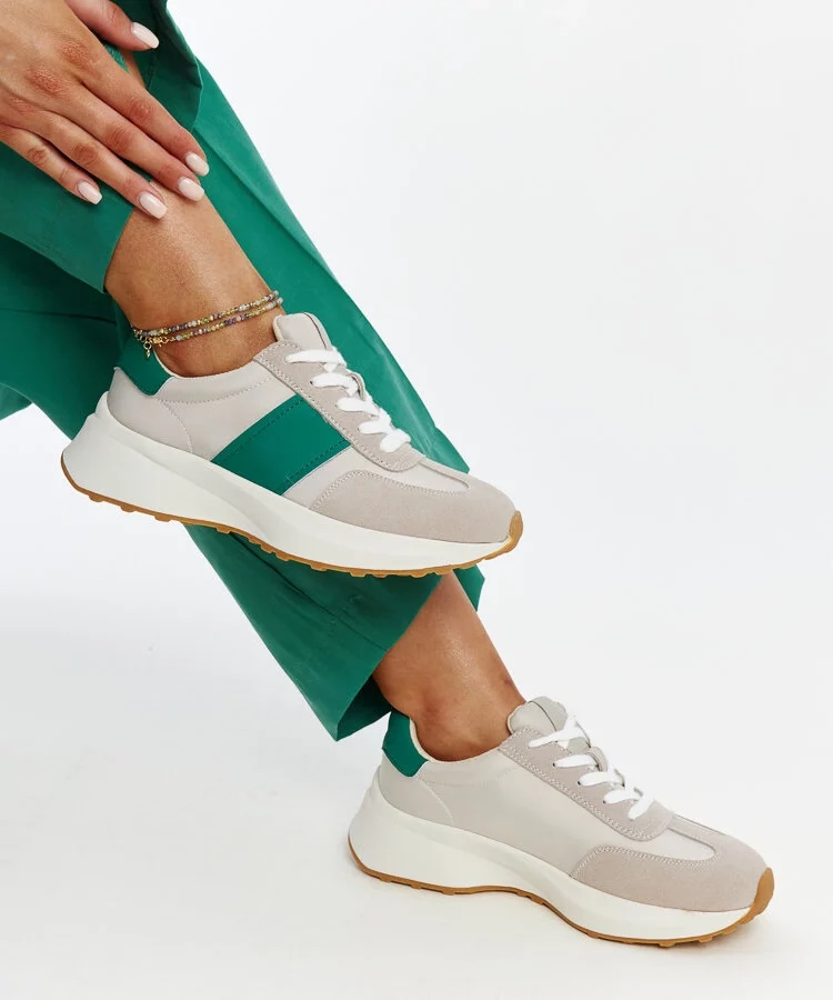 • Szaro-zielone skórzane sneakersy Ganim