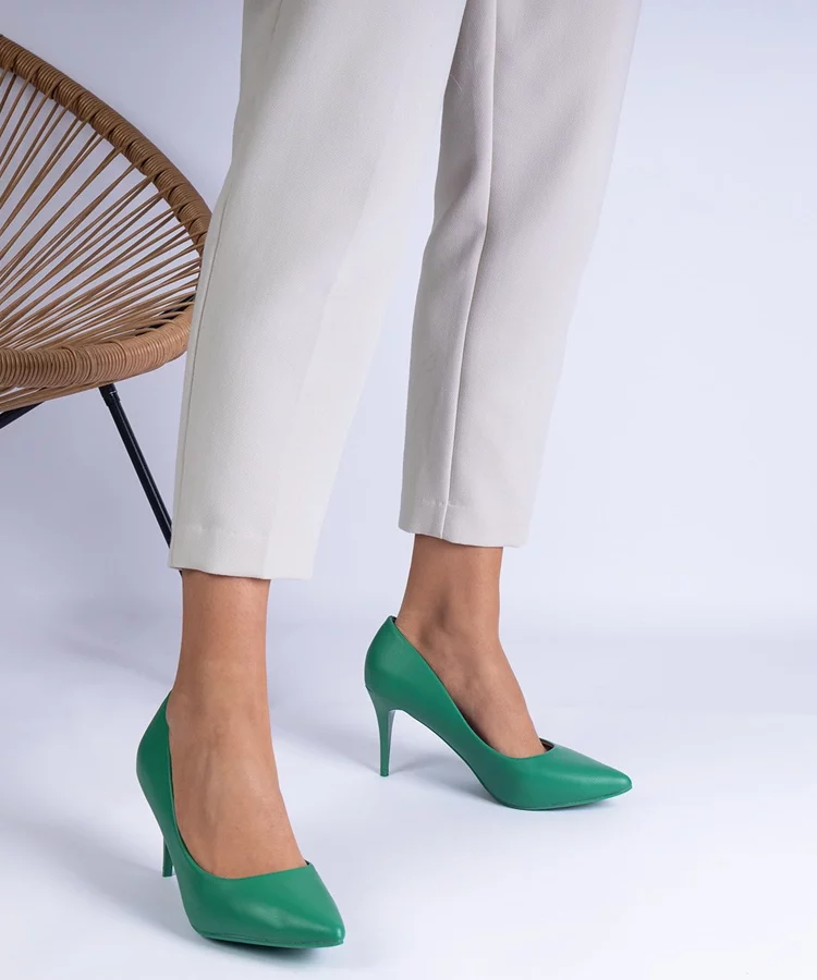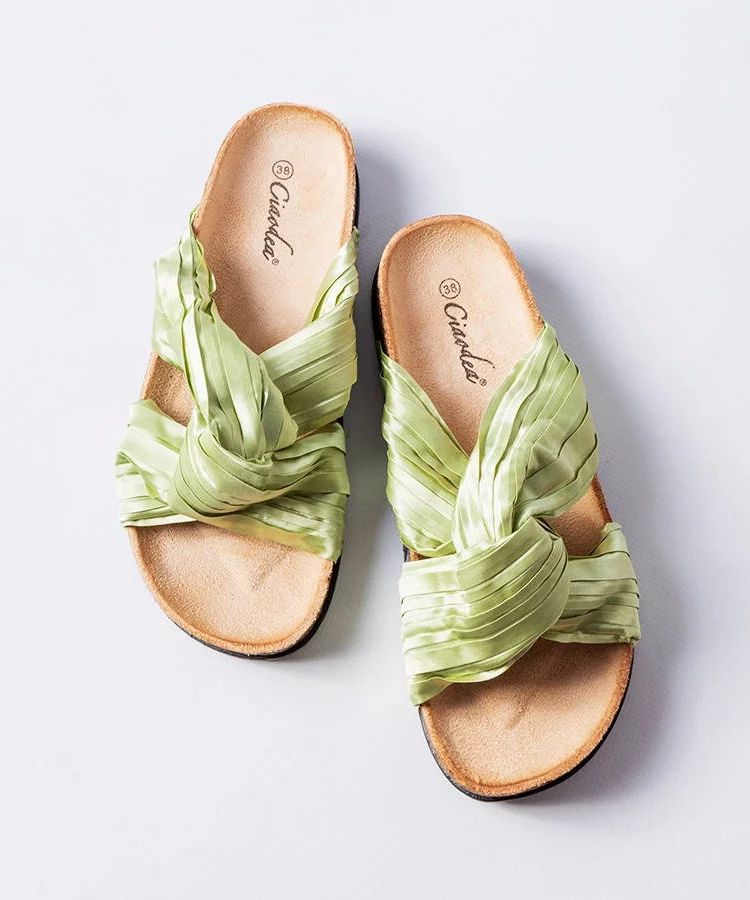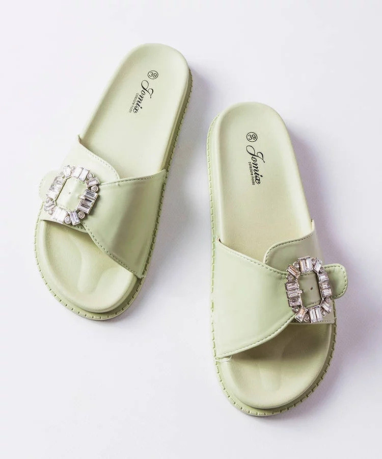 Zielone klapki zdobione materiałem Fresne