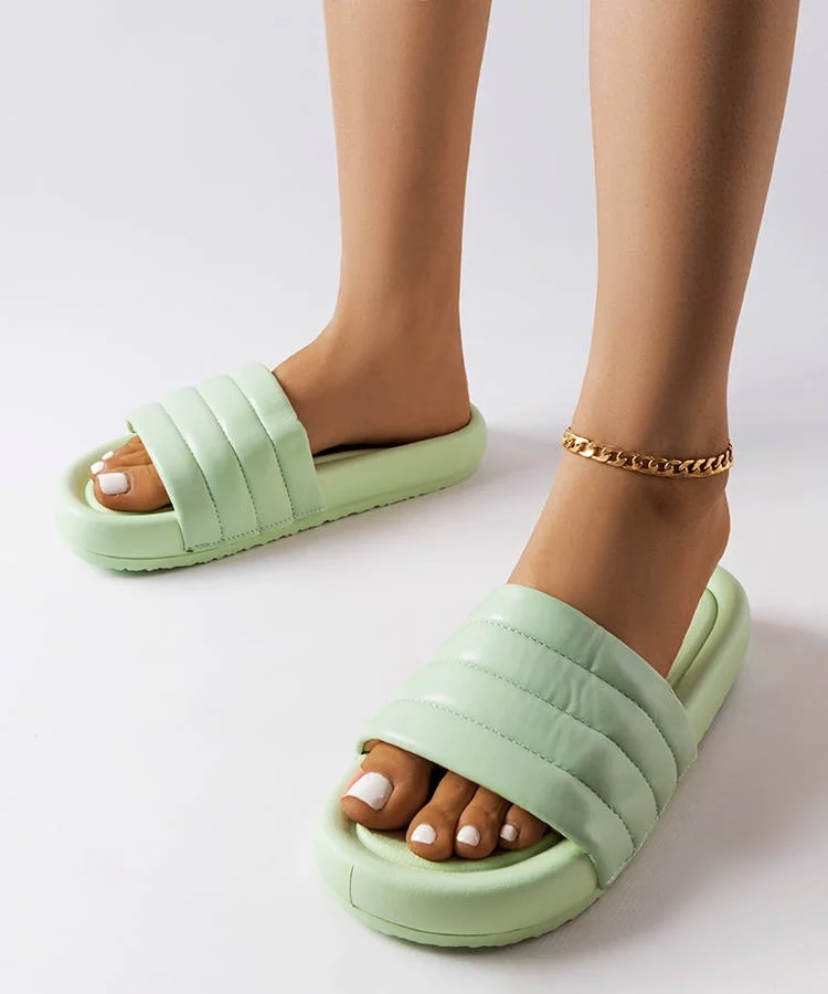 Zielone klapki zdobione pikowaniem Dorene