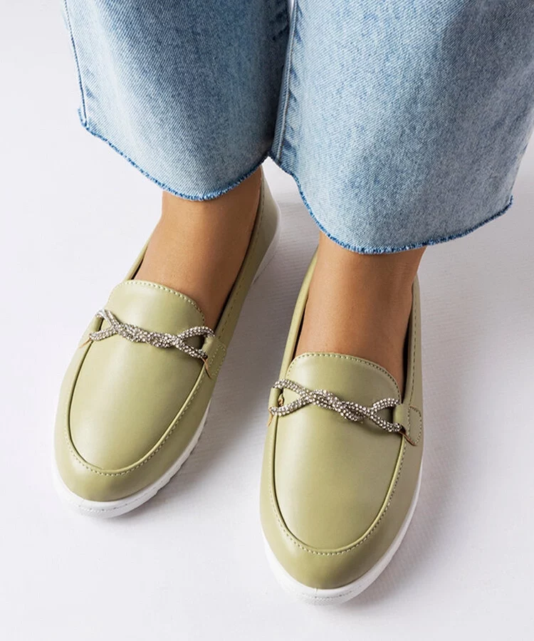 Zielone mokasyny z cyrkoniami Paola