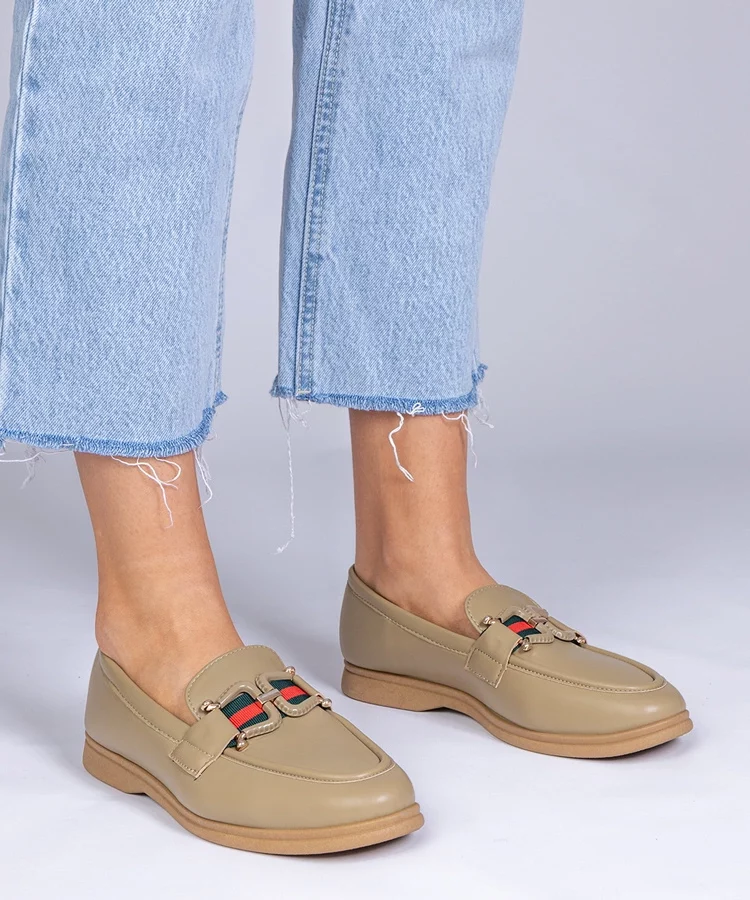 Zielone mokasyny z ekoskóry z ozdobą Kalenda