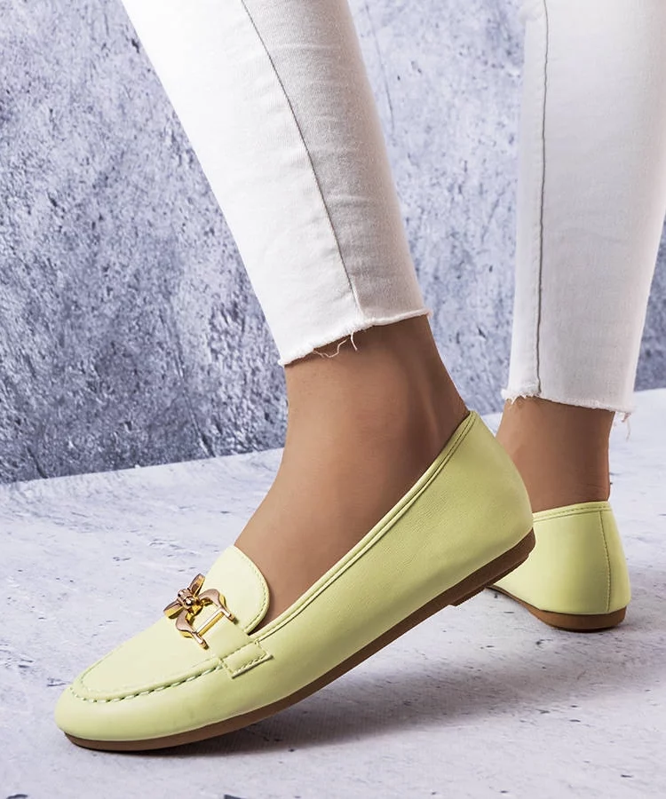 Zielone mokasyny ze złotą ozdobą Regina