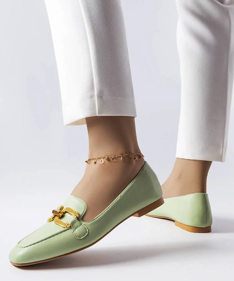 Zielone mokasyny zdobione łańcuchem Bobbie