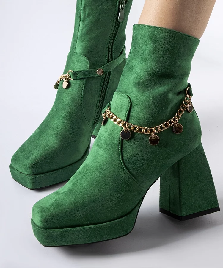 Zielone ocieplane botki z łańcuchem Ulster