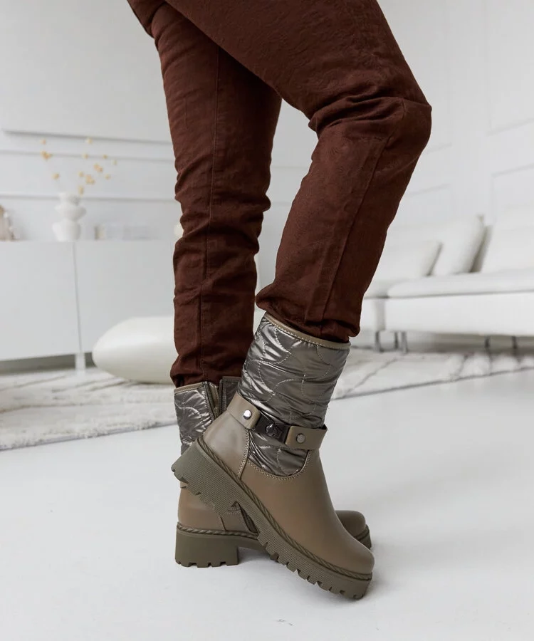 Zielone ocieplane botki z ozdobnym paskiem Lido