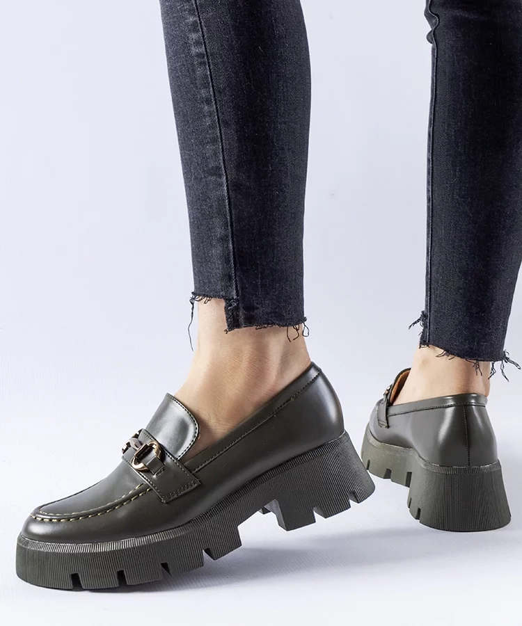 • Zielone mokasyny z klamerką Rousseau