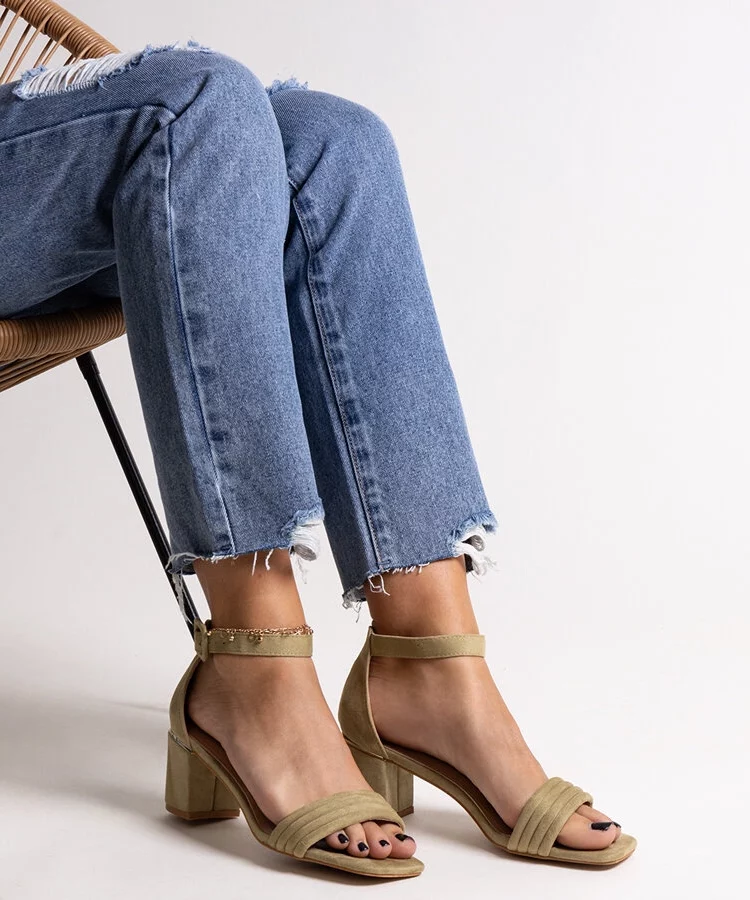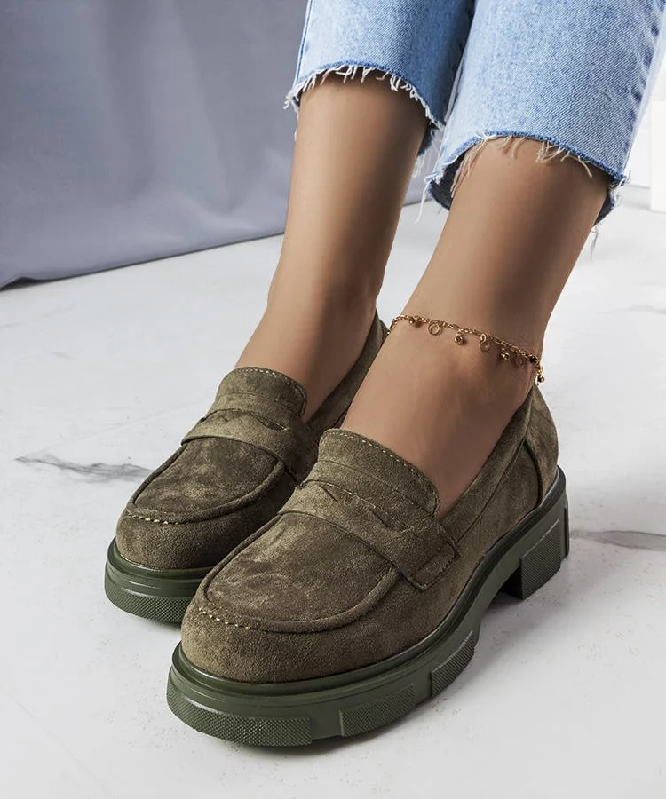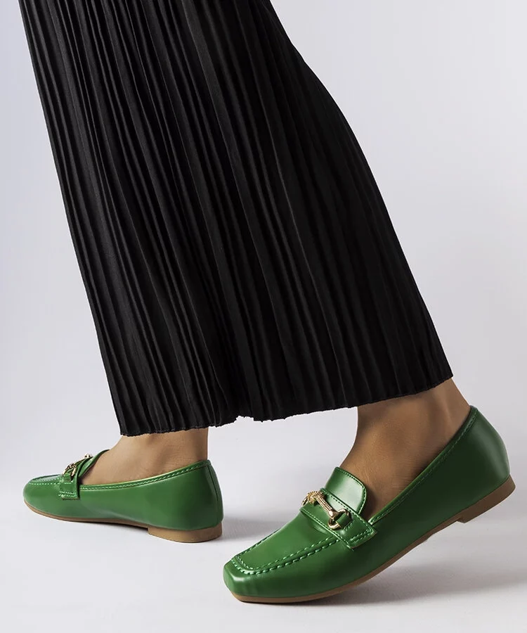 • Zielone półbuty damskie na obcasie z metaliczną ozdobą Lunares
