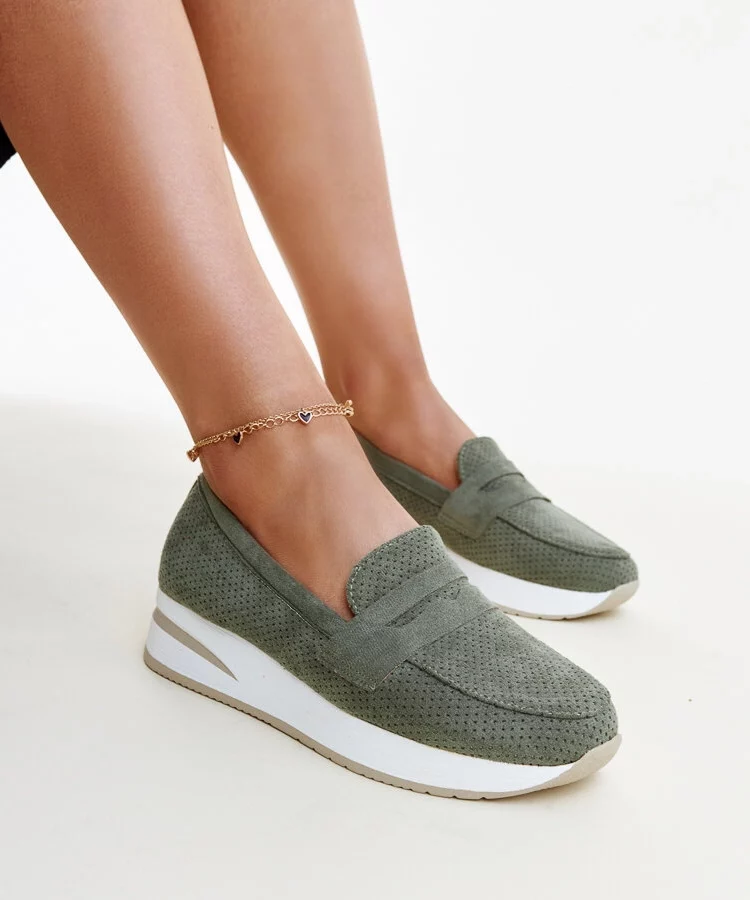 • Zielone półbuty damskie z siateczką na cholewce Moris