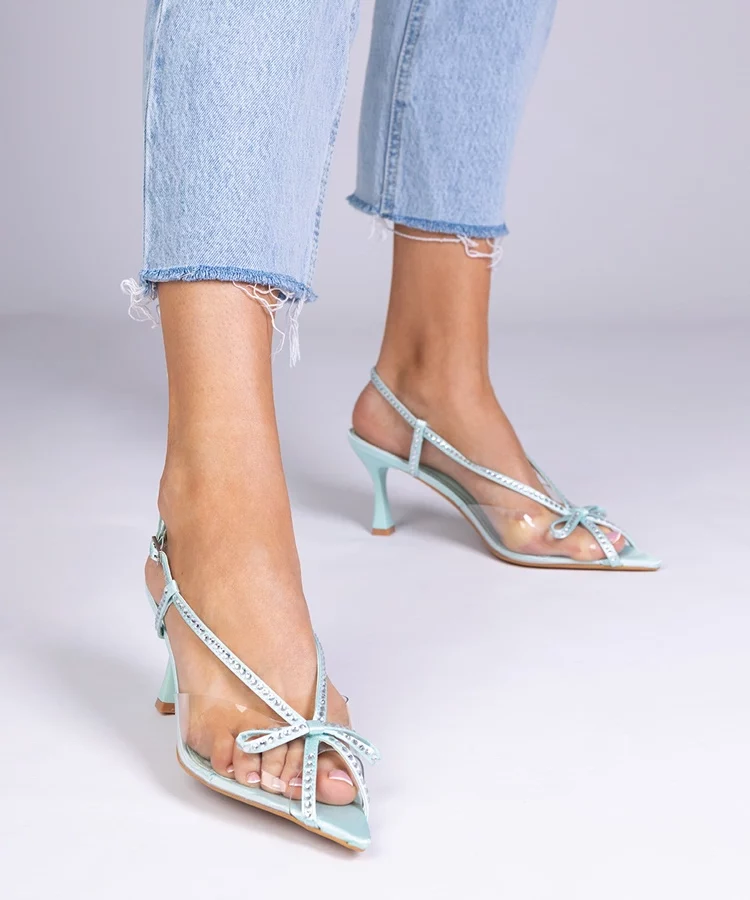 • Zielone przezroczyste sandały na szpilce z cyrkoniami Kloksi