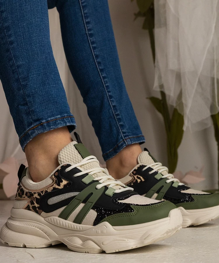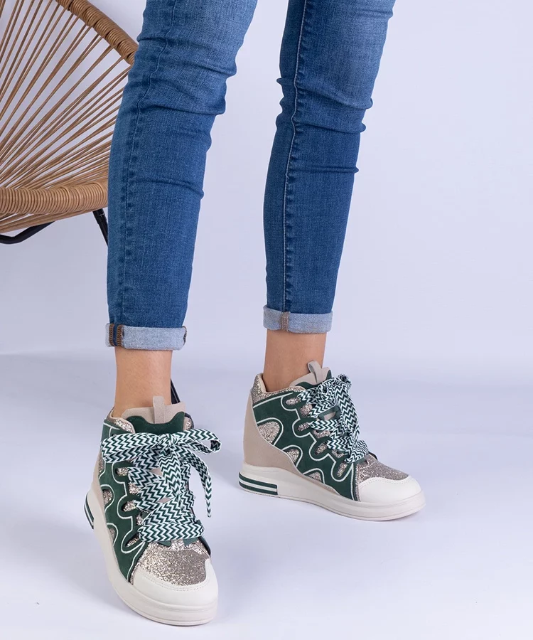 Zielone sneakersy z grubymi sznurówkami i brokatem Gralina