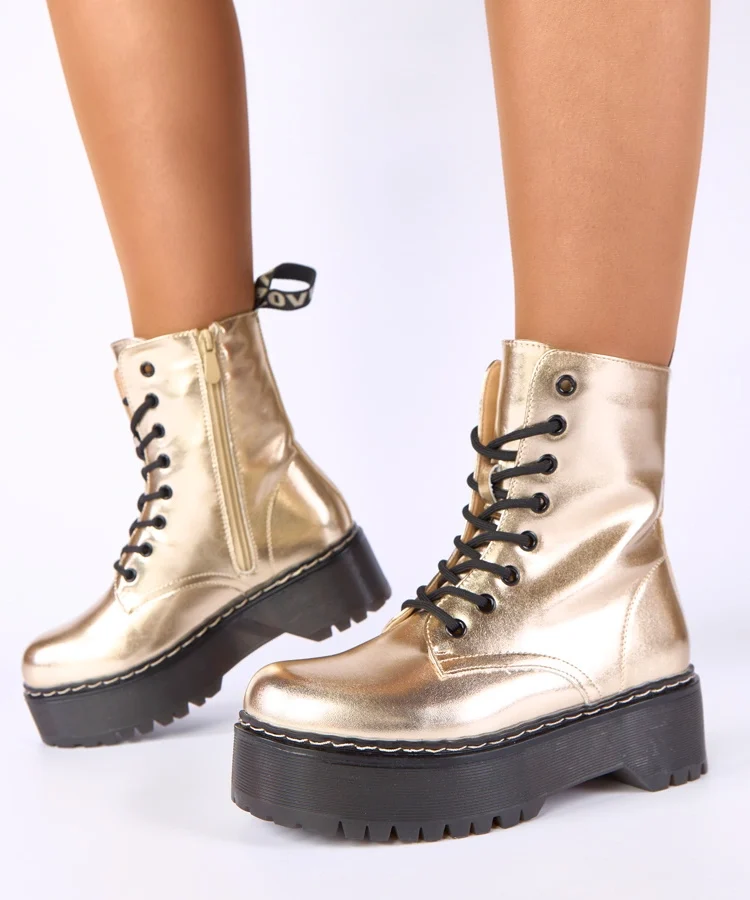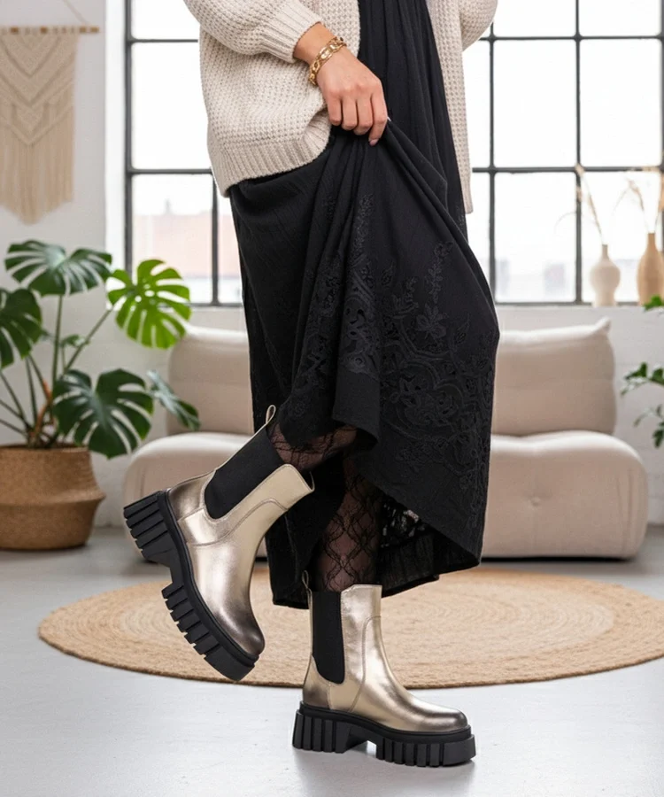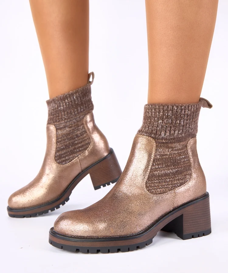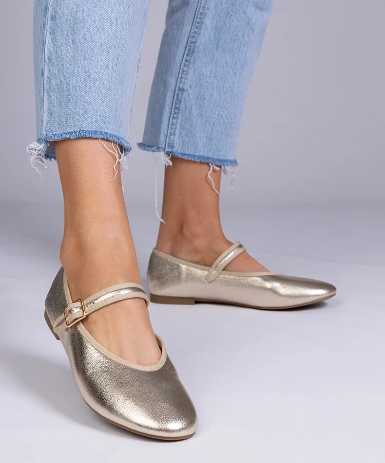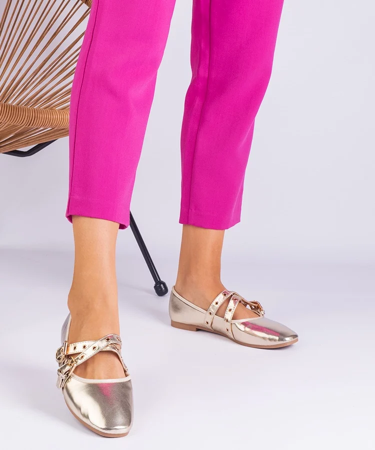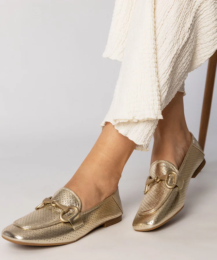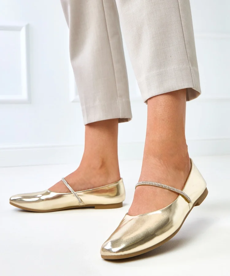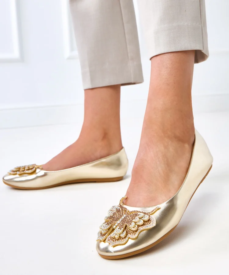 Złote brokatowe mokasyny z cyrkoniami Sawelia
