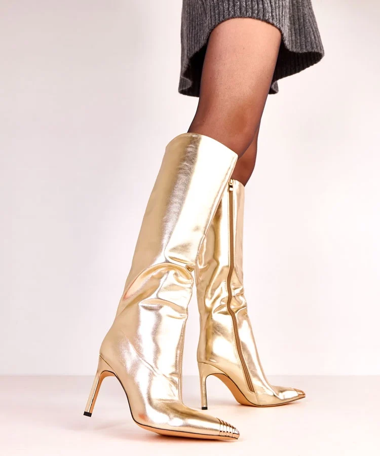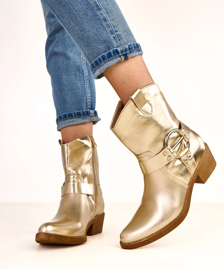 Złote kozaki eleganckie z metalowym noskiem Janisa