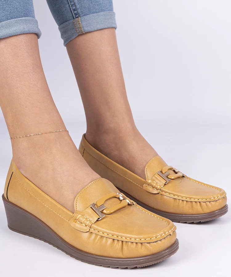 • Zółte mokasyny damskie na koturnie z ekoskóry Kappi